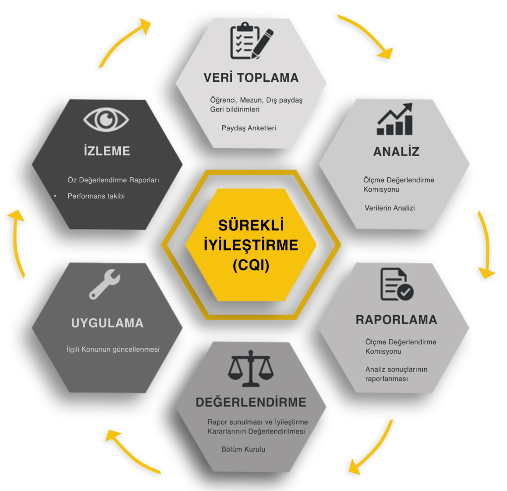 Akreditasyona yönelik hazırlık çalışmaları, Çankaya Üniversitesi’nin kurumsal kalite güvencesi yapısı ile eşzamanlı olarak yürütülmekte olup, bu kapsamda programın misyonu, eğitim hedefleri, program yeterlilikleri ve ders öğrenme çıktıları bütüncül bir yaklaşımla gözden geçirilmiştir. Üniversitenin bilgi paketi sistemi kapsamında ders içerikleri ve öğrenci iş yükü tabloları güncellenmiş, program hedefleri ile ders çıktıları arasındaki ilişkiler yeniden yapılandırılmıştır.